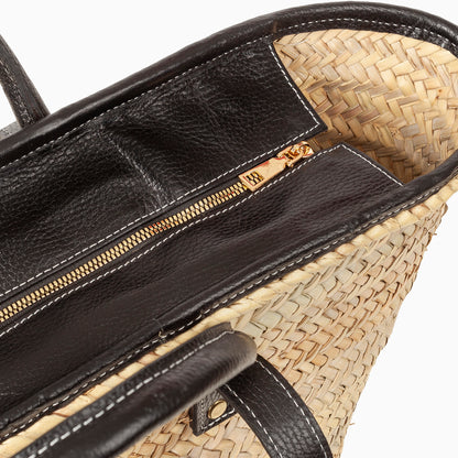 - Panier en paille et cuir végétal fait à la main au Maroc